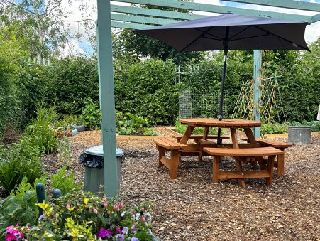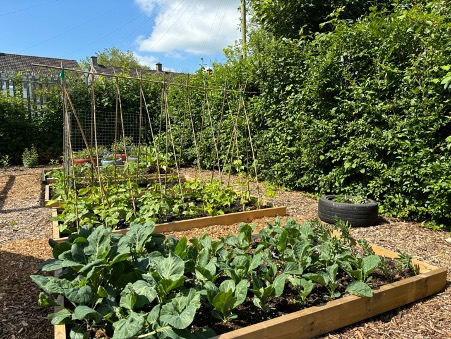 What a difference a year can make! Last year, the Fair Frome garden was an over-grown patch of weeds and brambles and now it is a blooming green space, offering an accessible, tranquil space for families and volunteers, as well as yielding an abundance of fruit and veg for the Food Bank.